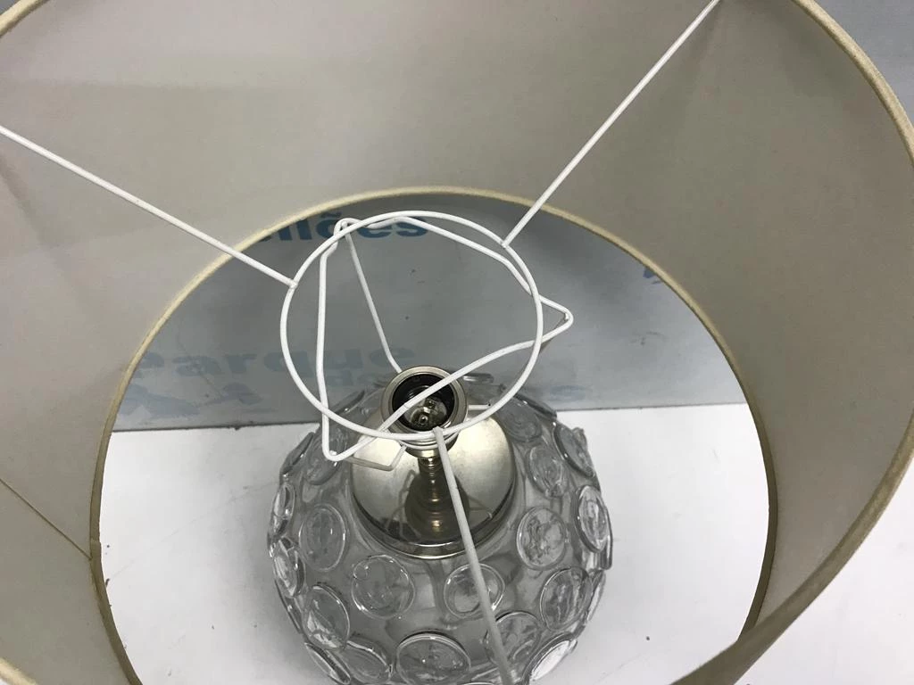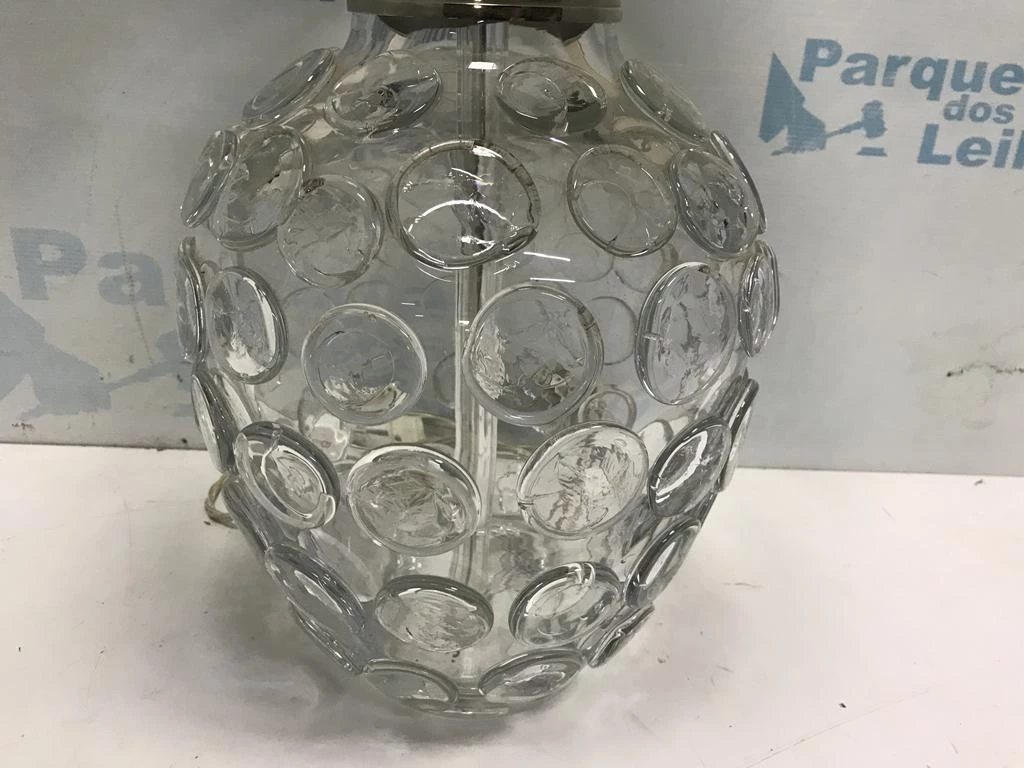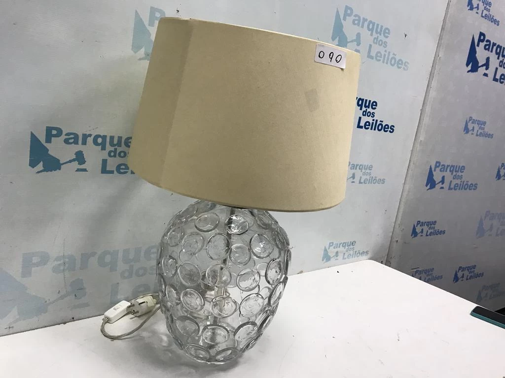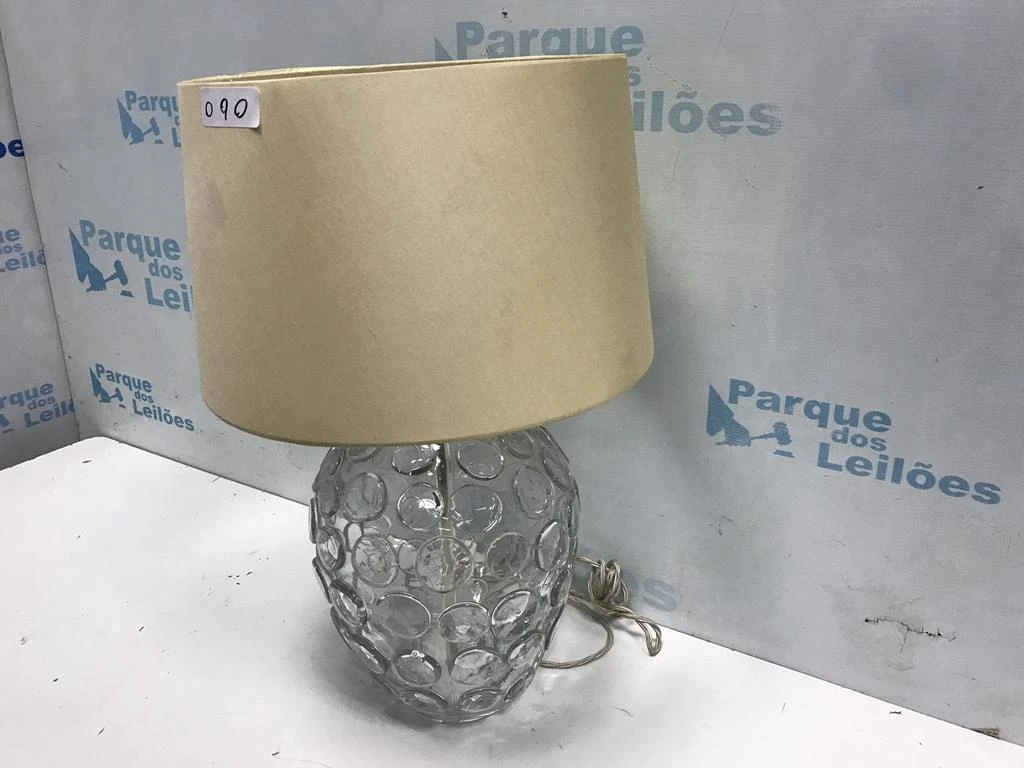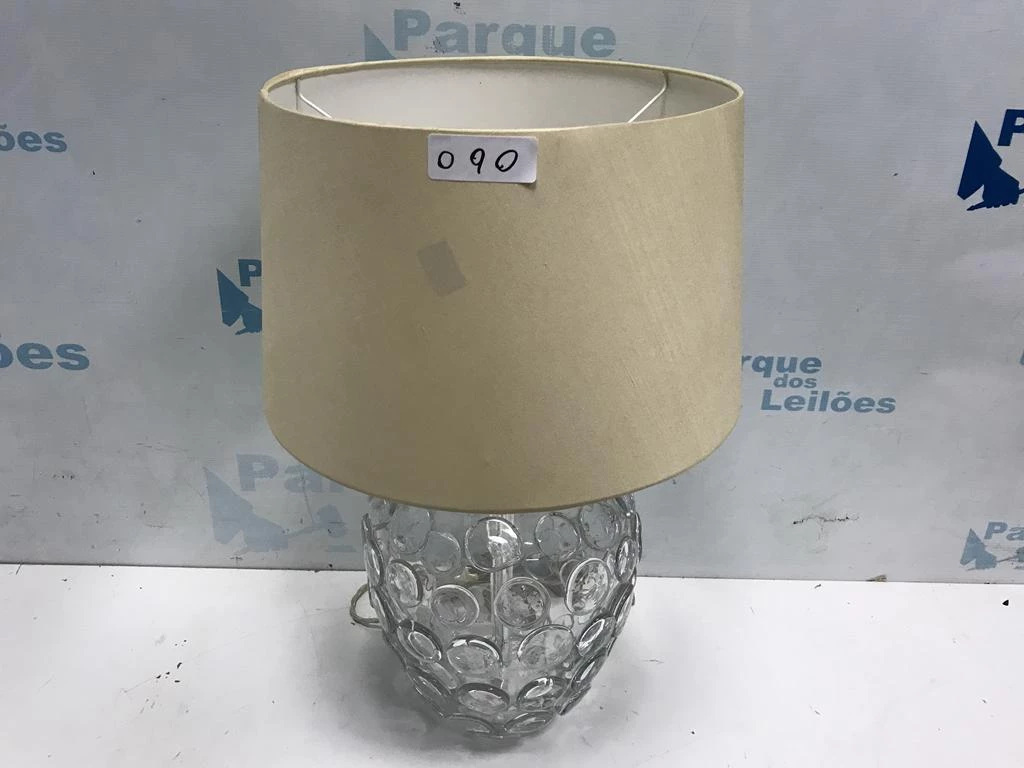 | Descrição: | 01 ABAJUR DE MESA COM BASE DE VIDRO DECORADO. TAG - 0039 PAT 61590 (NO ESTADO). |