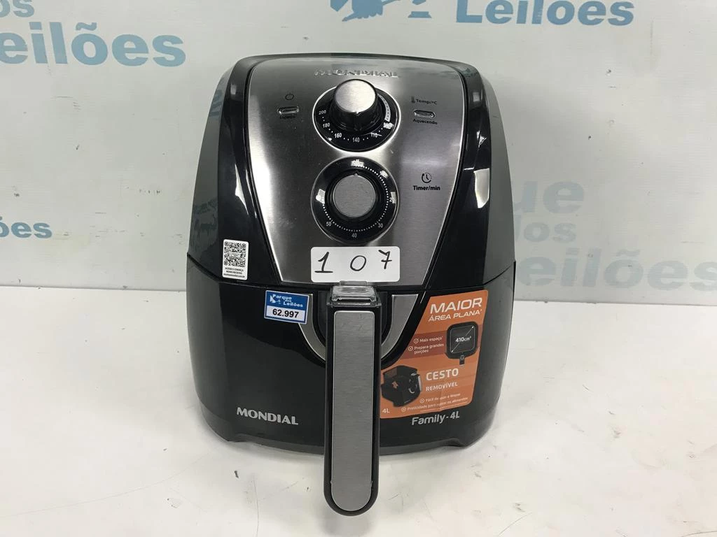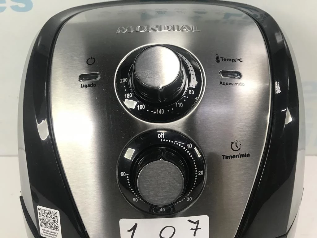 | Descrição: | 01 AIRFRYER 4L MARCA MONDIAL. PAT (NO ESTADO). |