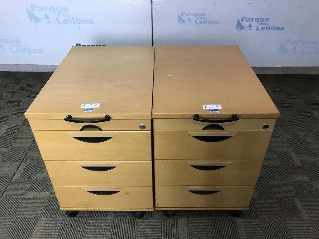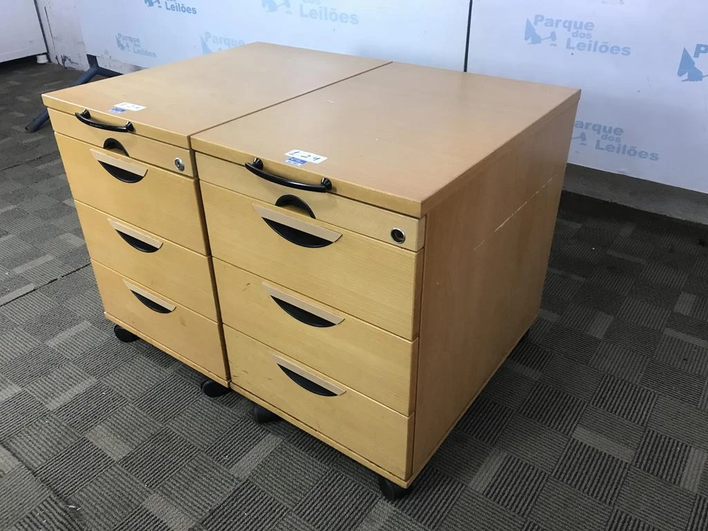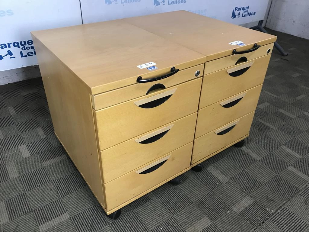 | Descrição: | 02 GAVETEIROS COM RODÍZIOS EM MADEIRA CLARA COM 4 GAVETAS . TAG - 212A04, 212B02 PAT - 62585, 62586 (NO ESTADO). |