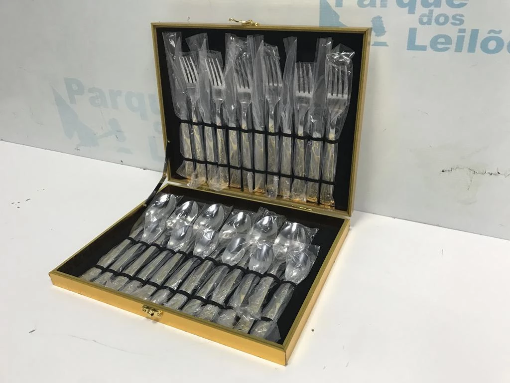 | Descrição: | 01 FAQUEIRO EM INOX COM 24 TALHERES COM MALETA. PAT 62644 (NO ESTADO). |