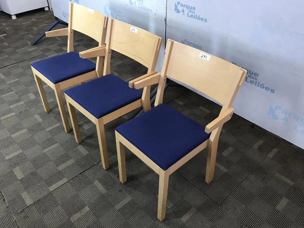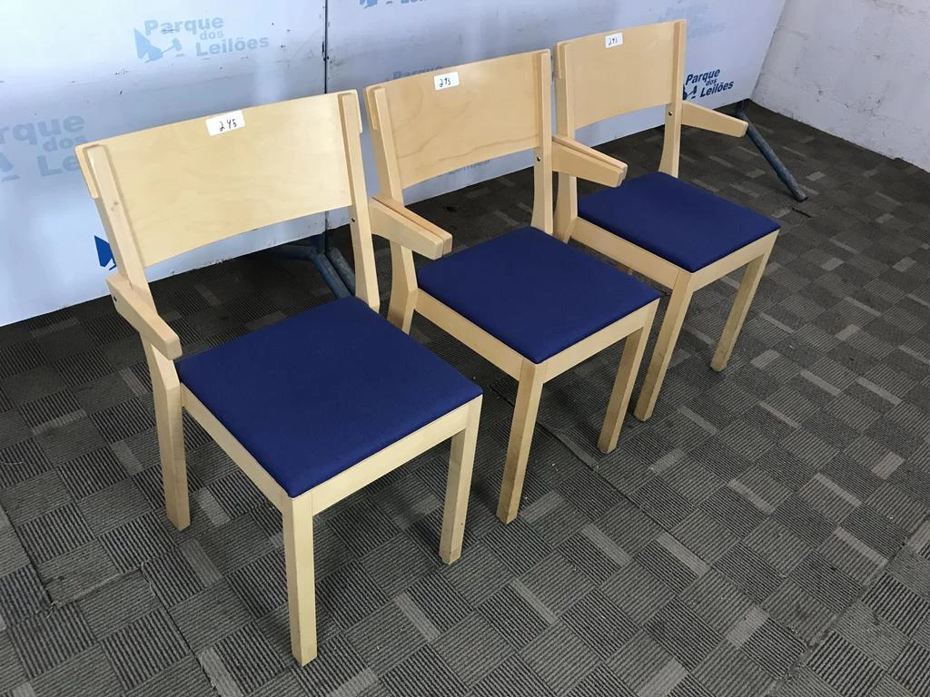 | Descrição: | 03 CADEIRAS EM MADEIRA CLARA COM BRAÇOS FIXOS ASSENTO ESTOFADO COM TECIDO COR AZUL. TAG 12403, 12404, 20608 PAT 62780, 62781, 62782 (NO ESTADO). |