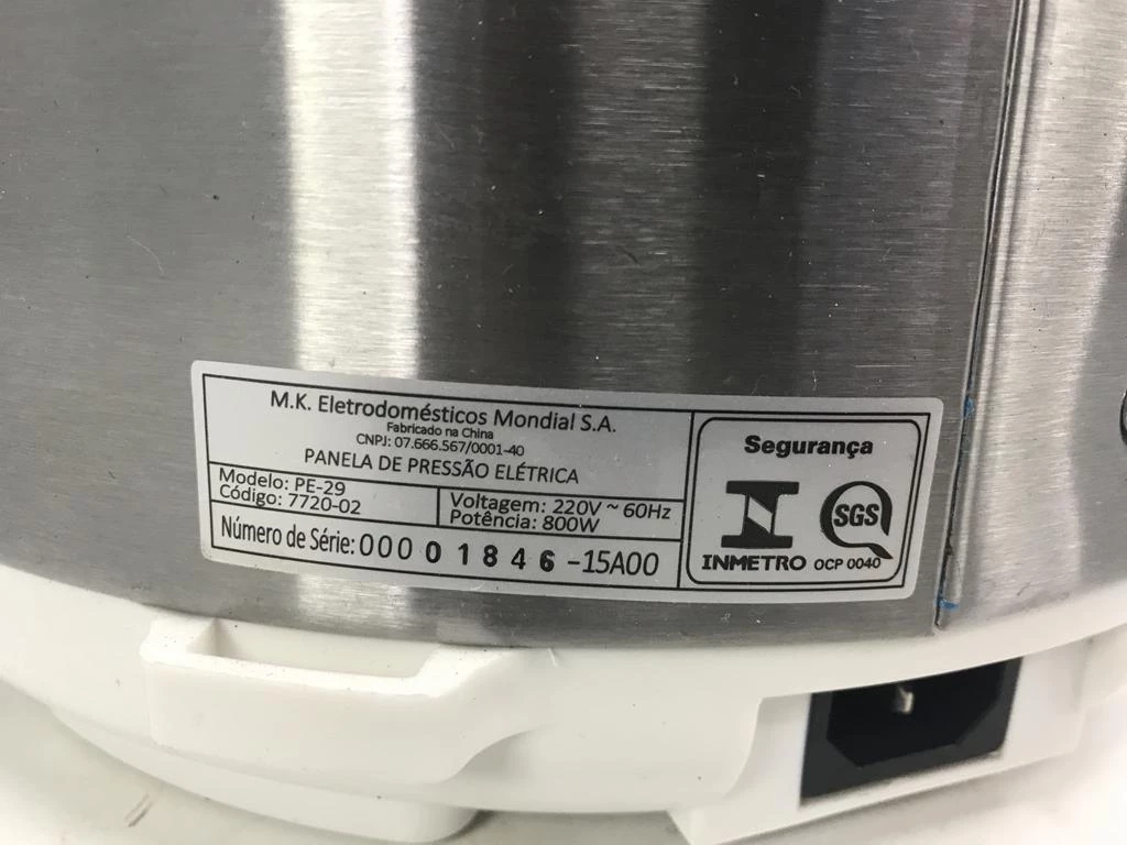 | Descrição: | 01 PANELA ELÉTRICA DE PRESSÃO 4L MARCA MONDIAL. PAT 63003 (NO ESTADO). |