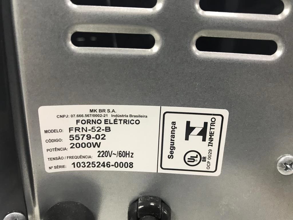 | Descrição: | 01 FORNO ELÉTRICO MARCA MONDIAL. PAT 63001(NO ESTADO). |