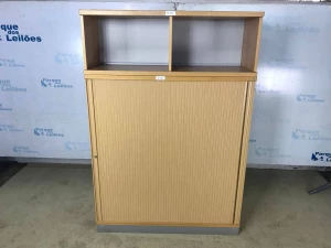 01 ARMÁRIO BAIXO EM MADEIRA CLARA COM UMA PORTA SANFONADA E UMA PRATELEIRA. TAG (12405) PAT 63031 (NO ESTADO).