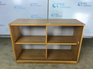 01 ARMÁRIO BAIXO EM MADEIRA CLARA, COM DUAS PRATELEIRAS. TAG (10510) PAT 63058 (NO ESTADO).