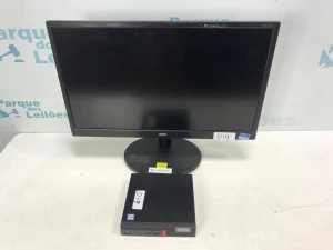 01 MINI GABINETE COM PLACA MÃE MARCA LENOVO E 01 MONITOR. PAT 63270 (NO ESTADO).