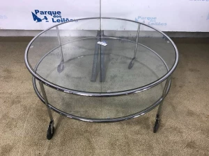 01 MESA DE CENTRO CIRCULAR COM TAMPO COM VIDRO E RODÍZIOS. TAG ( 0022 ) PAT 63033 (NO ESTADO)