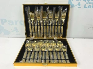01 KIT DE FAQUEIROS COM 24 PEÇAS DOURADO. PAT 62101 (NO ESTADO)