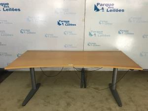 01 MESA COM BASE DE METAL E TAMPO EM MADEIRA CLARA. TAG (0044) PAT 63082 (NO ESTADO).