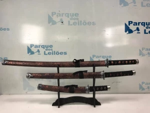 03 KATANAS COM BAINHAS E SUPORTE. PAT 63015 (NO ESTADO).