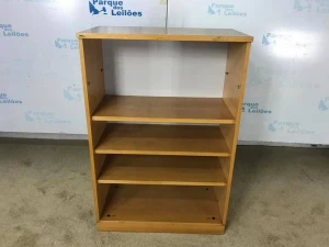 01 ESTANTE BAIXA EM MADEIRA CLARA COM 03 PRATELEIRAS. TAG (212B03) PAT 63059 (NO ESTADO).