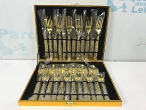 01 KIT DE FAQUEIROS COM 24 PEÇAS DOURADO. PAT 62102 (NO ESTADO)