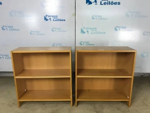 02 ESTANTES BAIXAS EM MADEIRA CLARA COM UMA PRATELEIRA. TAG ( 10606 - 20601 ) PAT 63060 - 63061 (NO ESTADO).