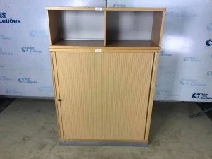 01 ARMÁRIO BAIXO EM MADEIRA CLARA COM UMA PORTA SANFONADA E UMA PRATELEIRA. TAG ( 12302 ) PAT 63041 (NO ESTADO).