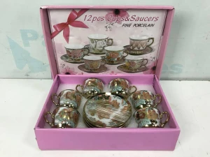 01 CONJUNTO DE XÍCARAS E PIRES COM 12 PEÇAS. PAT 63105 (NO ESTADO)