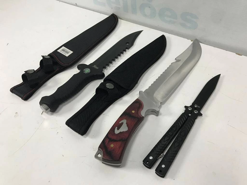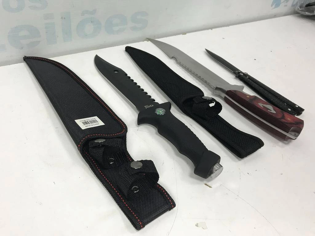 | Descrição: | 02 FACAS COM BAINHAS E 01 CANIVETE. PAT 63011 (NO ESTADO). |