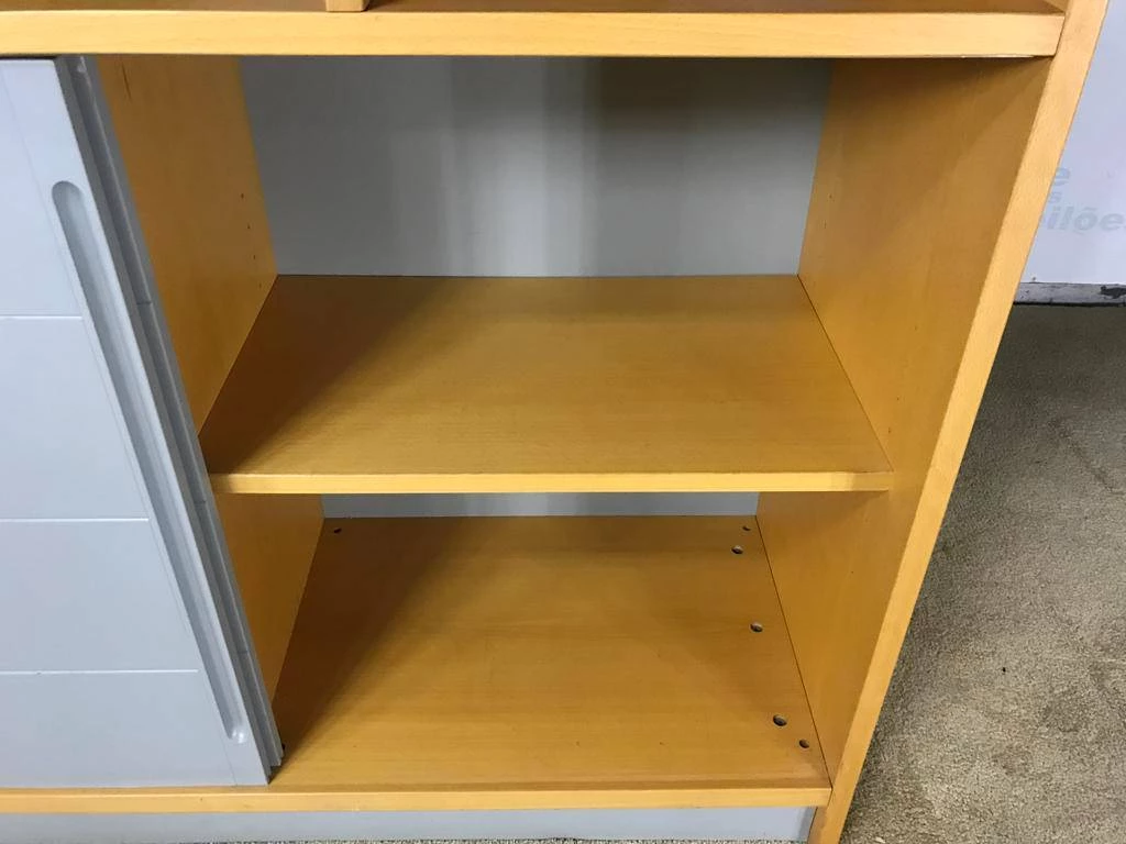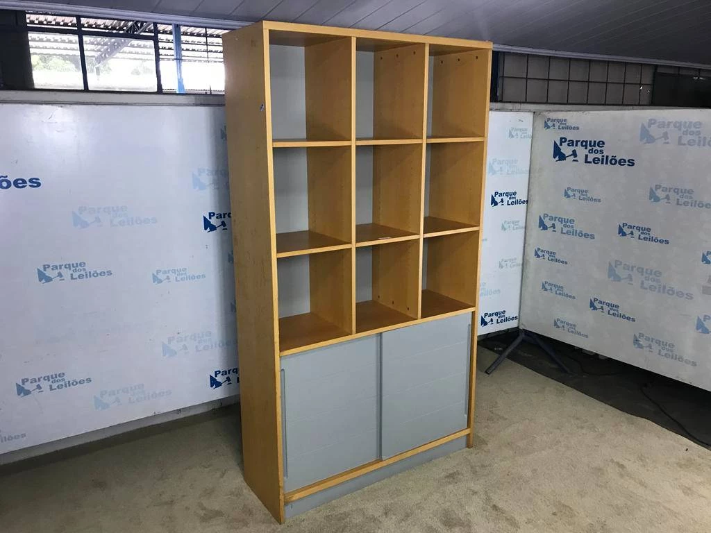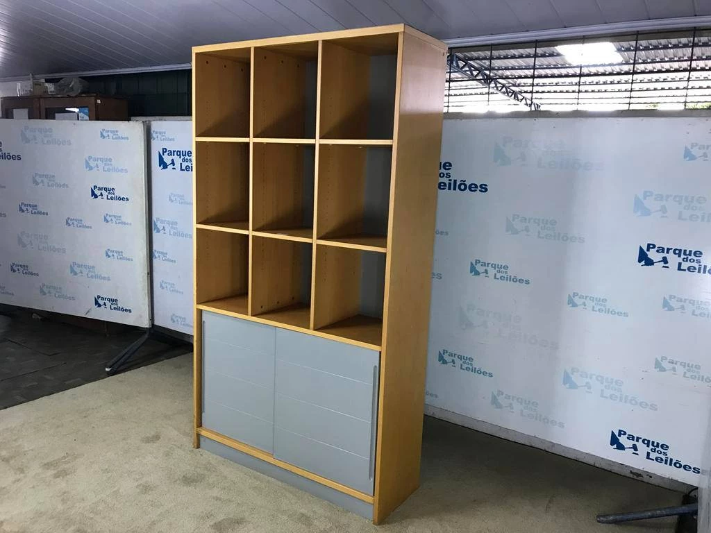 | Descrição: | 01 ESTANTE ALTA EM MADEIRA CLARA COM NOVE NICHOS, DUAS PORTAS DE CORRER E DUAS PRATELEIRAS. TAG (0006) PAT 63064 (NO ESTADO) |