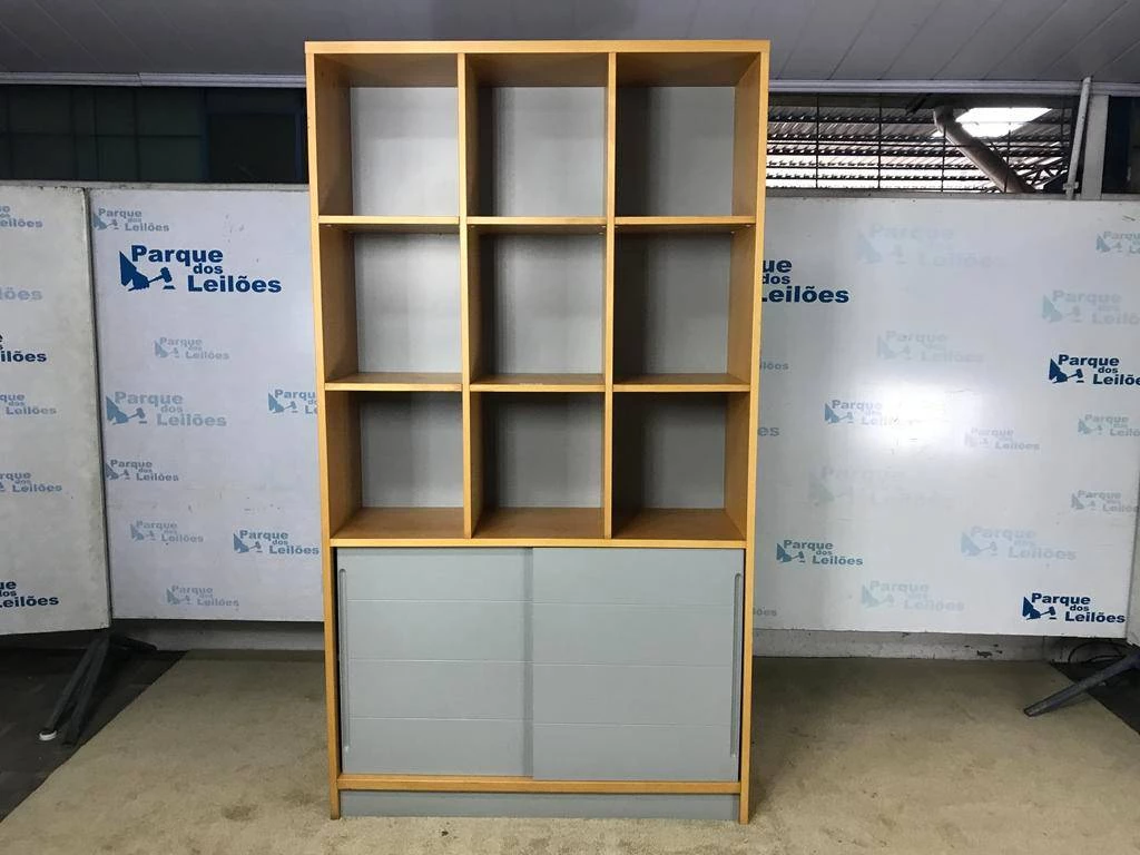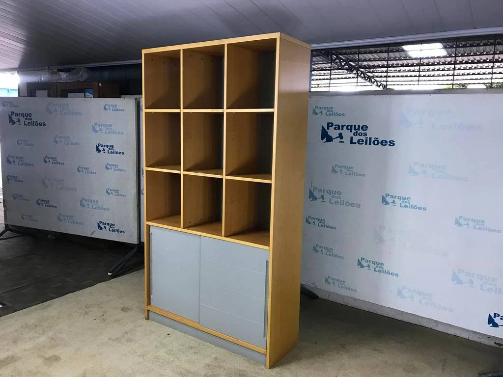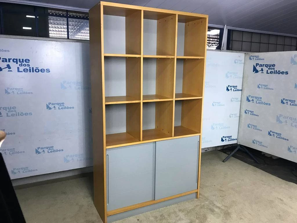 | Descrição: | 01 ESTANTE ALTA EM MADEIRA CLARA COM NOVE NICHOS, DUAS PORTAS DE CORRER E DUAS PRATELEIRAS. TAG (0009) PAT 63047 (NO ESTADO) |