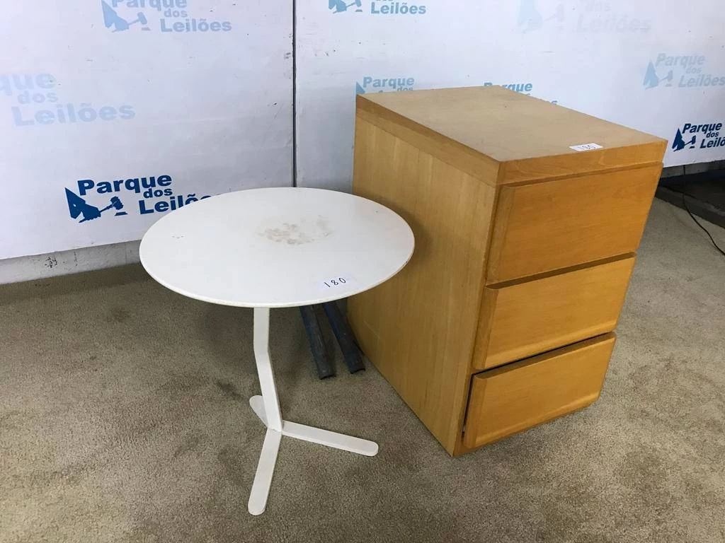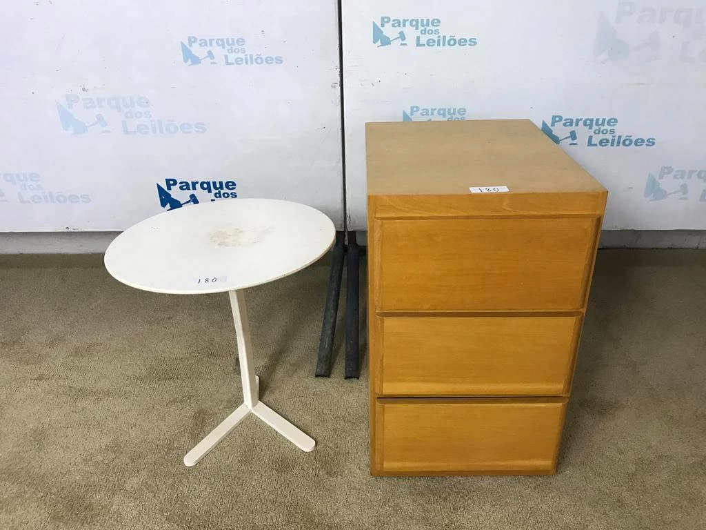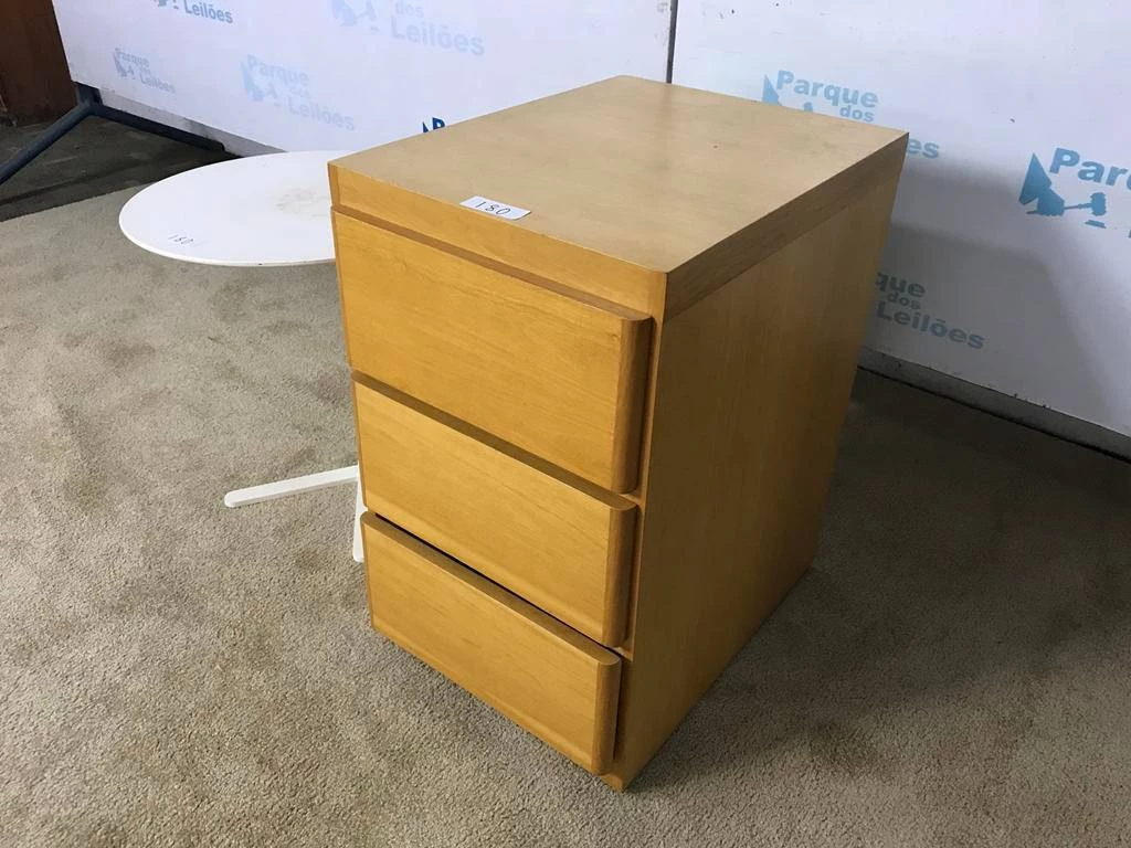 | Descrição: | 01 MESA DE CANTO COR BRACO E 01 GAVETEIRO EM MADEIRA CLARA COM TRES GAVETAS, COM RODÍZIOS. TAG (21006 - 0015) PAT 62794 - 63071 (NO ESTADO). |